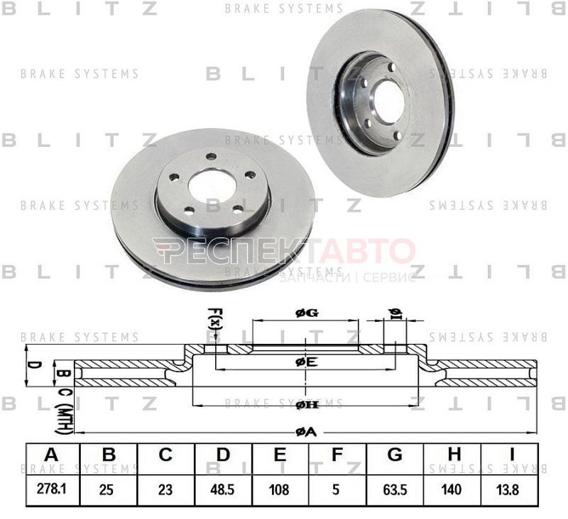 Диск тормозной передний (278мм)