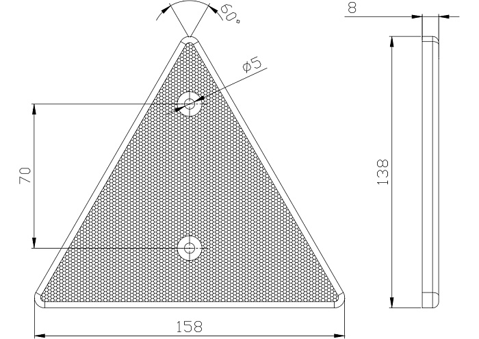 Светоотражатель треугольный красного цвета с отверстиями под винты.