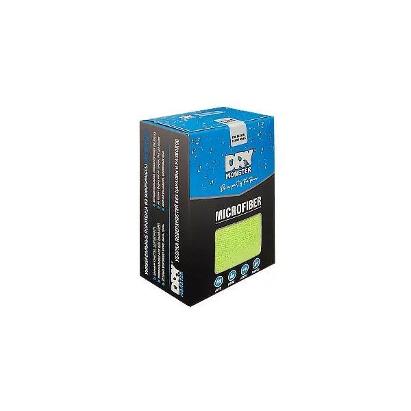 DRY MONSTER TERRY KING DM3535TK(6) - комплект универсальных микрофибр Terry King 35х35 см в удобном формате картонного диспенсера, для удобного хранения и использования. В наборе 6 микрофибровых салфеток 3 цветов по 2 штуки (голубой, желтый, зеленый).