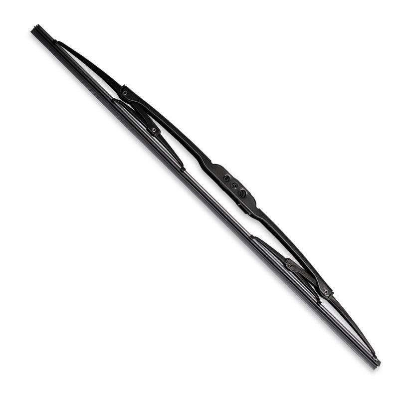 Чистящая резиновая лента в каркасных дворниках закреплена в развитом металлическом каркасе, это набор шарнирно закрепленных между собой рычагов, которые принято называть «коромыслами». На верхнем из них расположен узел крепления к поводку. Данная конструкция обеспечивает наилучшую прижимную силу даже на стеклах с высоким углом кривизны, облегчая подбор к любому автомобилю. Универсальный адаптер обеспечит возможность установки на большинство (более 95%) российских и иностранных автомобилей с традиционными типами поводков.